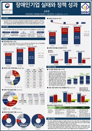 장애인기업종합지원센터(이사장 박마루)는 지난 11월 7일 중소기업중앙회에서 열린 한국중소기업학회 2025년 추계학술대회에서 ‘장애인기업 실태와 정책성과’를 주제로 포스터 발표를 진행했다. 이번 발표에서는 최근 3개년간의 장애인기업 실태조사 결과와 이를 바탕으로 추진된 정책 개선 사례가 공개됐다.장애인기업, 3년간 51% 증가…매출·고용도 동반 상승장애인기업실태조사는 국가승인통계(제142014호)로, 장애인기업의 경영 구조, 고용 현황, 재무 성과 등을 종합적으로 분석해 정책 수립의 기초 자료로 활용된다. 발표에 따르면, 2020년부