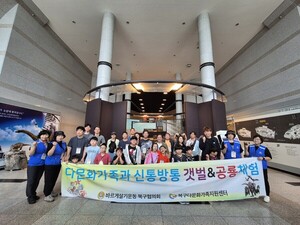 지난 6월14일(토) 다문화 11가족과 선생님2명, 바르게살기운동 북구협의회 서민주 여성회장을 비롯한 5명의 위원이 함께 경남 고성 공룡박물관과 갯벌체험학습을 떠났다.출발 전부터 내린 빗줄기에 걱정이 앞섰지만, 아이들의 들뜬 표정과 설렘이 가득한 분위기 속에서 행사는 예정대로 진행됐다.우산을 쓴 채 공룡의 역사 속으로 빠져든 아이들은 생생한 화석과 거대한 공룡모형을 마주하며 상상의 나래를 펼쳤다.이어진 갯벌체험에서는 물때를 따라 변화하는 갯벌생태를 가까이서 관찰하며 손으로 직접 만져보는 신나는 시간이 이어졌다.서로 다른 문화적 배경