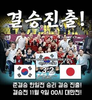 제2회 U16 여자배구 아시아권 선수대회에서 대한민국 대표팀이 일본을 상대로 짜릿한 역전승을 거두며 결승에 올랐다. 이번 승리에는 경남여중 배구부 출신 배서빈·장수인·문티아라 선수의 활약이 크게 빛났다.경기 초반 일본은 강력한 서브와 블로킹으로 기세를 올리며 1, 2세트를 가져갔다. 그러나 위기의 순간, 경남여중 선수들이 코트 위에서 집중력을 발휘했다. 배서빈은 날카로운 스파이크로 상대수비를 흔들었고, 장수인은 안정적인 리시브와 블로킹으로 팀의 수비를 단단히 지켰다. 문티아라는 빠른 공격전개와 코트 장악력으로 분위기를 반전시켰다.