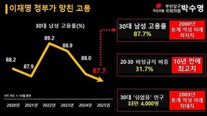박수영 국민의힘 의원은 최근 청년고용악화와 관련해 “이재명 정부의 반기업 정책이 청년들의 일자리를 무너뜨리고 있다”고 강하게 비판했다.박 의원은 국가데이터처 통계를 인용하며 “올해 1월부터 10월까지 30대 남성고용률이 평균 87.7%로, 2000년 통계작성 이래 최저치를 기록했다”며 “제조업·건설업·정보통신 등 산업 전반이 위축되면서 일하는 30대 남성 자체가 줄고 있다”고 지적했다.그는 또 “2030세대 신규 채용 임금 근로 일자리가 올해 2분기 기준 240만 8000개로 지난해보다 11만 6000개 감소했다. 이는 2018년