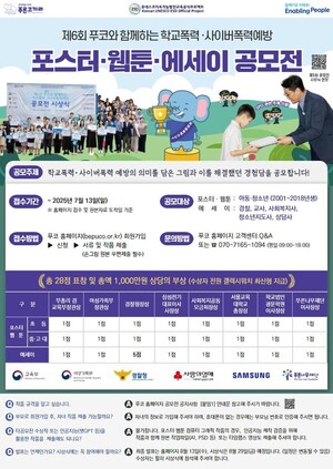 푸른나무재단(청소년폭력예방재단)이 ‘제6회 푸른코끼리 학교폭력·사이버폭력 예방 공모전’을 개최한다. 이번 공모전은 아동·청소년(01~18년생), 경찰, 교사, 사회복지사, 상담사 등 누구나 참여할 수 있으며, 포스터·웹툰·에세이 부문으로 진행된다.접수는 7월 13일까지 푸른코끼리 공식 홈페이지에서 가능하며, 총 28점의 표창과 갤럭시 워치 최신형이 수상자 전원에게 제공될 예정이다.공모전의 핵심 주제는 ‘학교폭력·사이버폭력을 예방하는 메시지’와 ‘함께 이겨내고 극복한 경험담’이다. 특히, 올해는 위기청소년 선도 및 보호 사례도 포함되