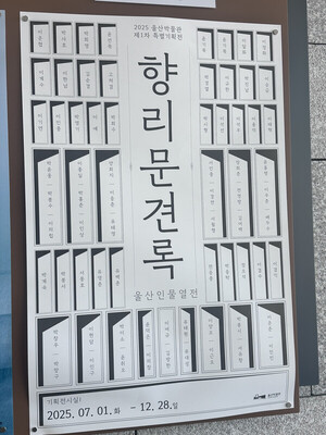 2025년 울산박물관 제1차 특별기획전향리문견록_울산인물열전 기간 : 2025. 7. 1.(화) ~ 12. 28.(일)장소 : 울산박물관 기획전시실Ⅰ (1층) 울산박물관에서 제1차 특별기획전 ‘향리문견록_울산인물열전’을 전시중이다.이 전시는 조선시대 울산에서 활약했던 인물들을 기록을 통해 살펴보고 관련 유물을 통해 재조명해보는 전시이다.향리문견록은 울산 출신 문인 윤인석이 작성한 것으로 울산인물 사전의 성격을 띠고 있는 자료이다.울산박물관에서 2021년에 기증된 항리문견록을 바탕으로 다양한 울산인물을 만나볼 수 있다.향리문견록에는