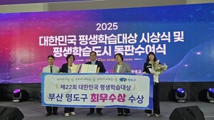 부산 영도구(구청장 김기재)가 10월 1일, ‘제22회 대한민국 평생학습대상’에서 최우수상을 수상하며 평생학습도시로서의 위상을 다시 한 번 입증했다.이번 수상은 영도구가 생활 속 평생학습을 실천하고, 학습문화 확산에 기여한 다양한 사례를 발굴·실행한 결과로 평가받았다. 특히, 주민들의 자발적인 참여와 지역사회와의 협력 속에서 이룬 성과라는 점에서 의미가 깊다.김기재 영도구청장은 “이번 수상은 영도구민 여러분의 적극적인 참여와 열정, 그리고 함께해 주신 모든 분들의 노력 덕분”이라며 “앞으로도 누구나 배움의 기회를 누릴 수 있는 평생
