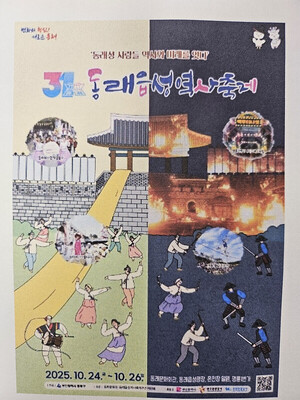 부산광역시에서 동래읍성역사축제를 개최한다. 동래읍성역사축제는 1995년 시작으로 31년 동안 이어져온 동래구의 대표적인 역사교육 체험축제로, 올해는 '동래성 사람들, 역사와 미래를 잇다!'라는 새로운 슬로건으로 개최된다. [날짜]2025.10.24 ~ 2025.10.26[장소]부산광역시 동래구 문화로 80 (명륜동) [내용]1. 대표 프로그램: 동래부사행차 길놀이, 동래세가닥줄다리기, 동래성전투재현 뮤지컬2. 주제 프로그램: 1592년 동래를 만나다(관문체험), 1592년 동래를 즐기다(동래장터체험)3. 문화 공연 프로그램: 개막공