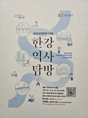 서울특별시에서 한강역사탐방을 진행하고 있다. 한강역사탐방 프로그램은 한강의 역사·문화자원을 감상하는 관광해설과 교육을 제공한다. 총 16개 코스로 운영되며, 탐방객은 해당 코스를 거닐며 해당 코스와 관련된 한강의 역사를 탐방할 수 있다.[기간]2025.4.4~2025.11.30[장소]서울특별시 한강공원[행사내용]1코스(광나루길): 경강의 시작과 전쟁을 주제로 하며 주요 이동 경로는 풍납토성 - 도미부인 동상 - 광진교8번가 - 광나루터 표지석2코스(송파나루길): 도시의 형성과 발전을 주제로 하며 주요 이동 경로는 삼전도비 – 석촌호