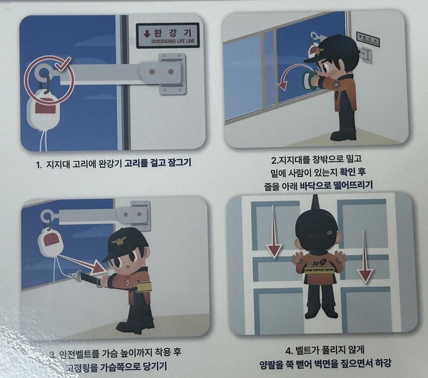 생각보다 많이 어렵진 않으시죠? 더 자세한 방법은 안전체험관 유튜브를 확인해주세요. 또한, 완강기 체험은 가까운 소방서나 안전체험관에 문의하여 체험해보실 수 있습니다.