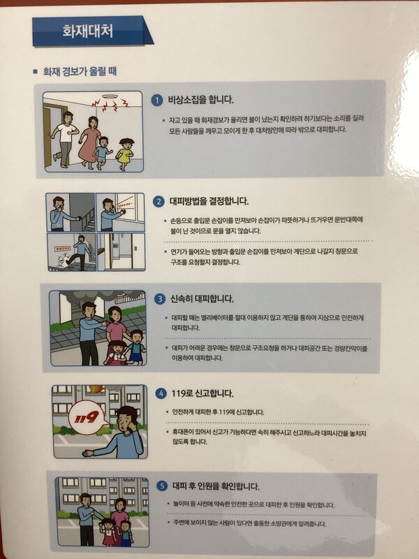 몇일 전, 천안으로 가는 기차역에서 화재 경보기가 오작동으로 울렸는데 아무도 대처하지 않는 모습을 보고 놀랐던 기억이 있어 화재 대처 방안에 대해서도 소방본부의 책자를 참고하여 작성하니 많은 분들이 보시고 앞으로는 화재 경보기가 울리면 일단 혹시 모른다는 마음으로 대피하시는 분들이 많아져, 그로 인한 사고가 많이 줄었으면 하는 바람을 가져봅니다.