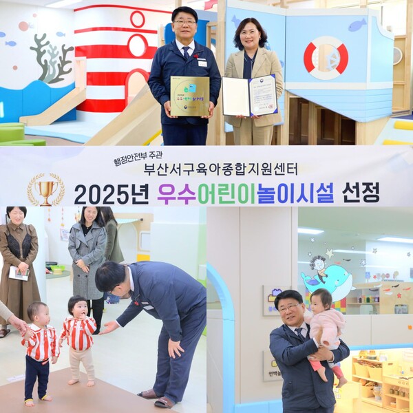 부산 서구 육아종합지원센터가 행정안전부가 주관한 ‘2025년 우수 어린이놀이시설’에 선정되며 아동친화도시로서의 위상을 다시 한 번 입증했다.